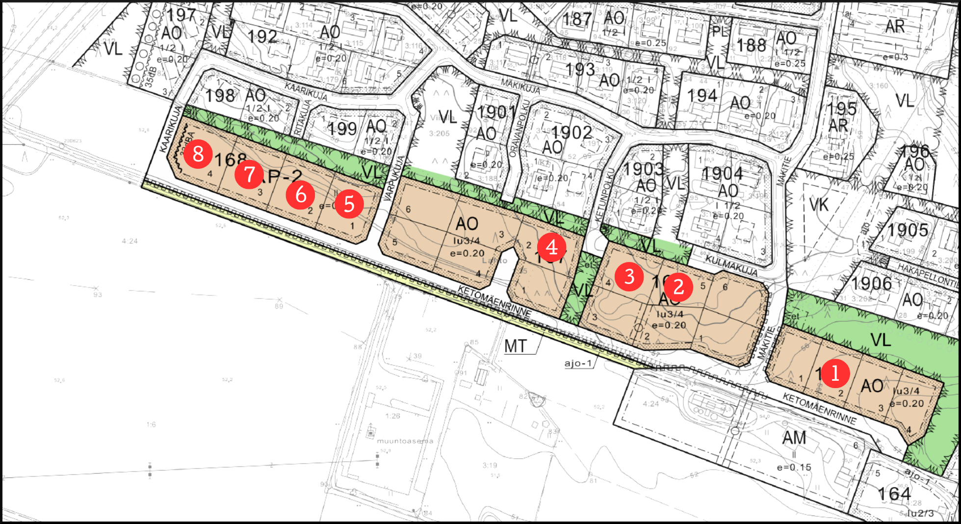 Tontit ovat keskustaajamassa ja niitä on yhteensä 20 kpl. Ne ovat kooltaan 1330 – 2050 m2. Osa tonteista on metsäisiä rinnetontteja ja osa peltotontteja rakentuen jatkoksi Säästökallion alueelle.